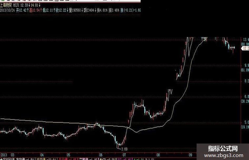 使用下面源码 HSJ:=DMA(C,SUMBARS(v,FINANCE( 7)*1.75)); Ema(HSJ,6); Ema(HSJ,36); Ema(HSJ,72); MA(AMOUNT/(VOL*100),SUMBARS(v,FINANCE( 7)*175));