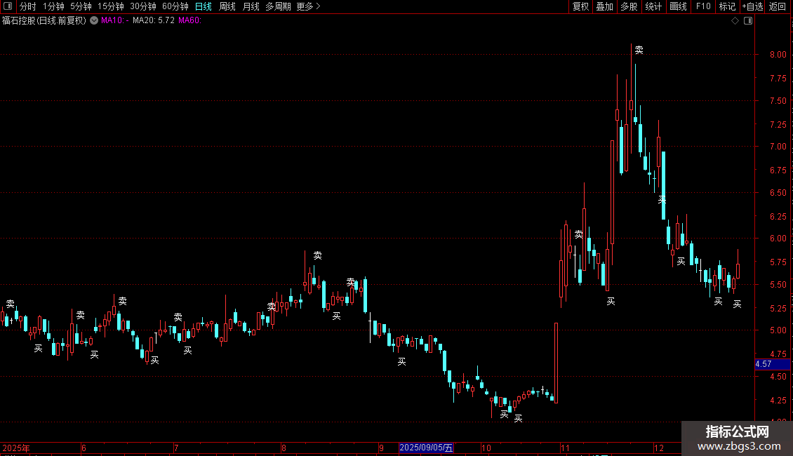 卖:IF(CROSS(界,指导线) OR CROSS(卖线,买线),C,DRAWNULL),COLORLIGRAY,NODRAW;