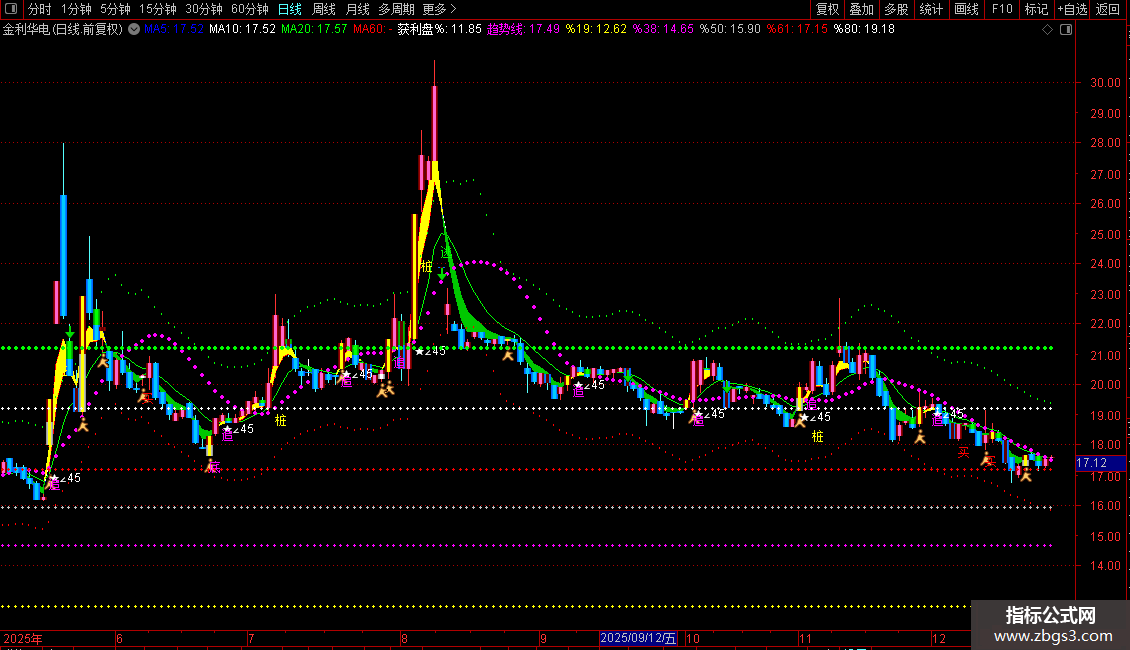 中:EMA(C,5),COLORWHITE,LINETHICK1;