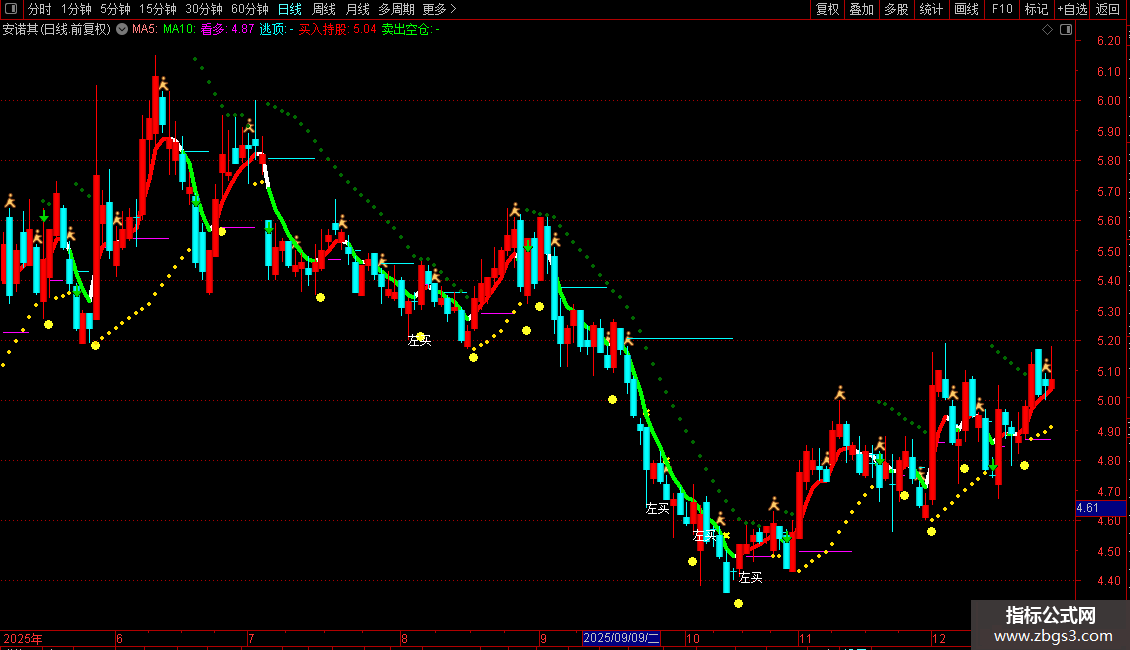 输出卖出空仓:如果A1X<0ANDA2X<0,返回A1,否则返回无效数画绿色,线宽为4