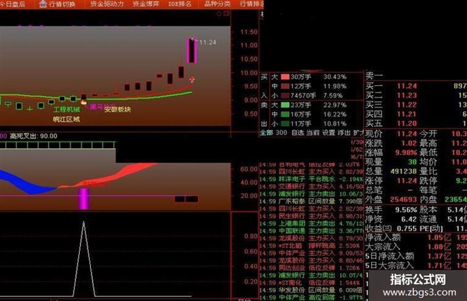 通达信【智能AI量能】识别主力资金监控量能买入信号明显源码