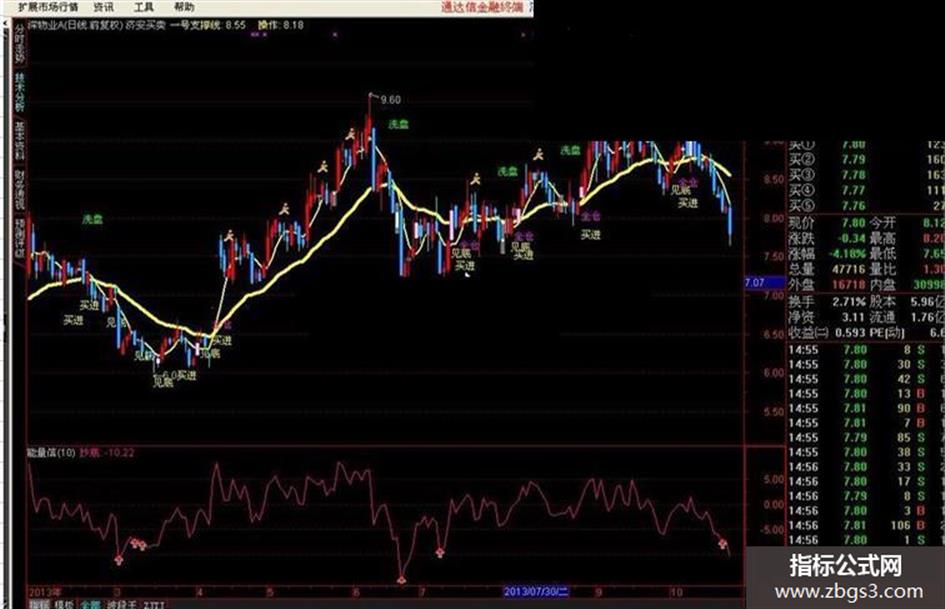 DRAWTEXT( CROSS(上线1,上线) AND 上线1>操作,LOW *0.95,'买进' ),COLORYELLOW;