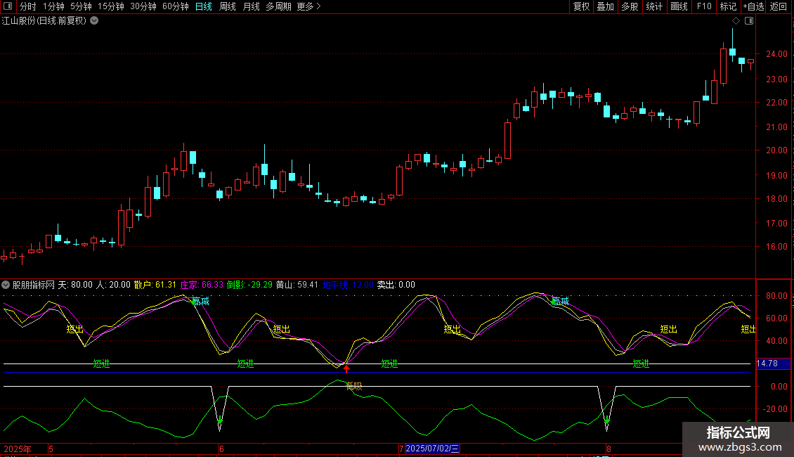 DRAWTEXT(CROSS(庄家,散户) AND 散户>40 AND 71>散户,50,'短出'),COLOR00FFFF;