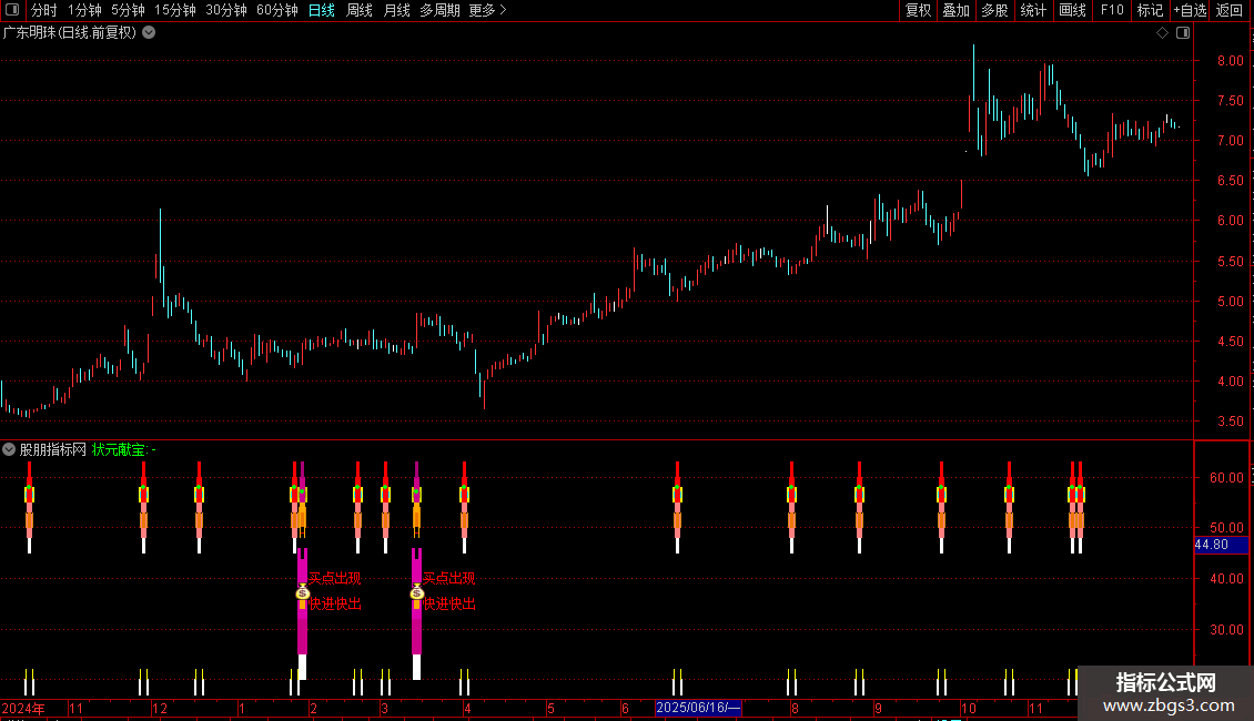 状元献宝:IF(状元郎,58,DRAWNULL),LINETHICK4,POINTDOT,COLORGREEN;
