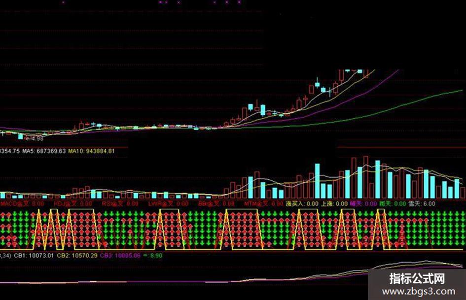 1、成本分析指标,这是一个长期指标,当3条线开始融合的时候开始关注,当3条线发散时候就是这只票开始启动的时候了,也就是所谓的买入时机。