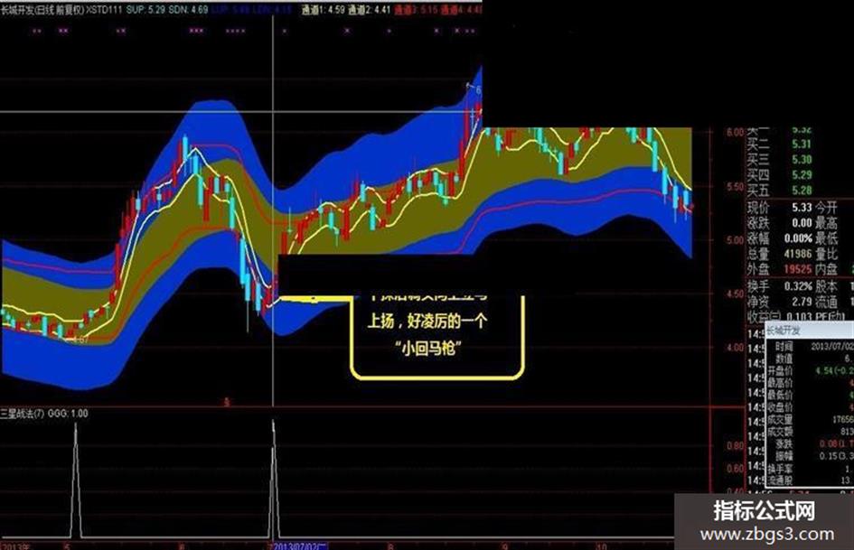 象棋中有一阵法叫三兵齐进,稳扎稳打,进而不燥。个股中出现这种走势是一个信号,但此时还不可贪功冒进,我们再结合昨日所提的薛斯通道,就能很好的提高我们的胜率。