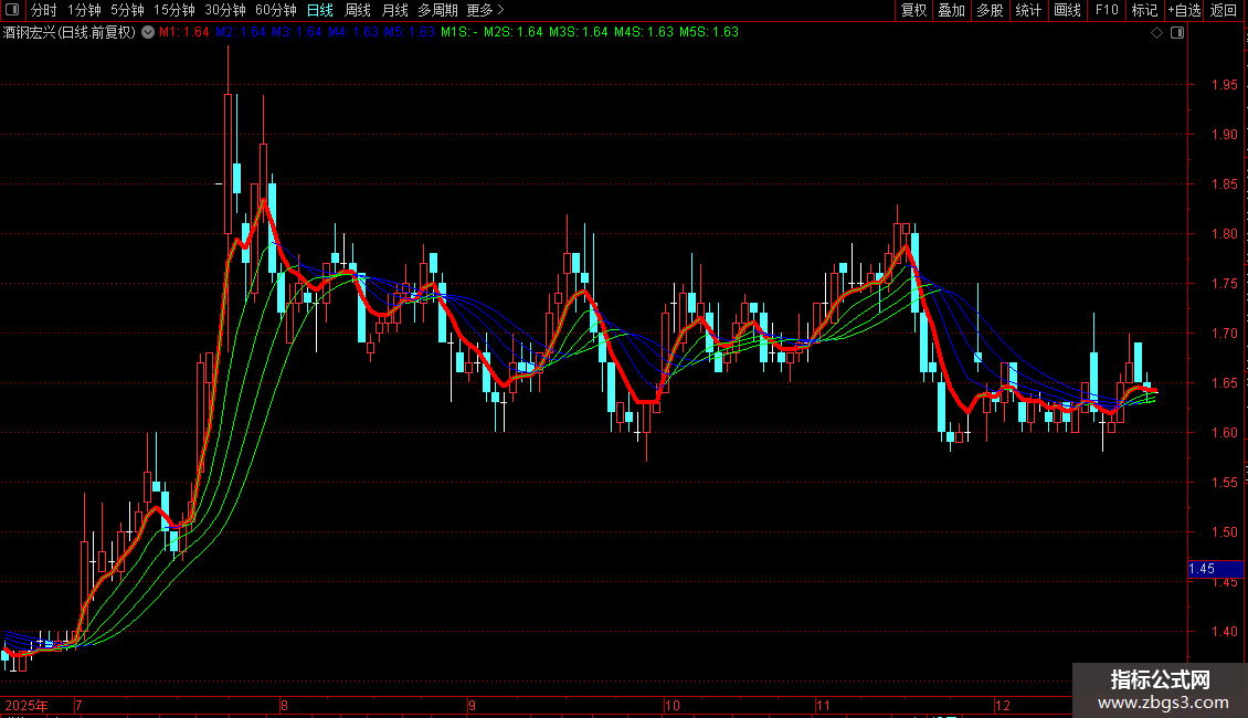 M1:EMA(C,5),COLORRED,LINETHICK4;