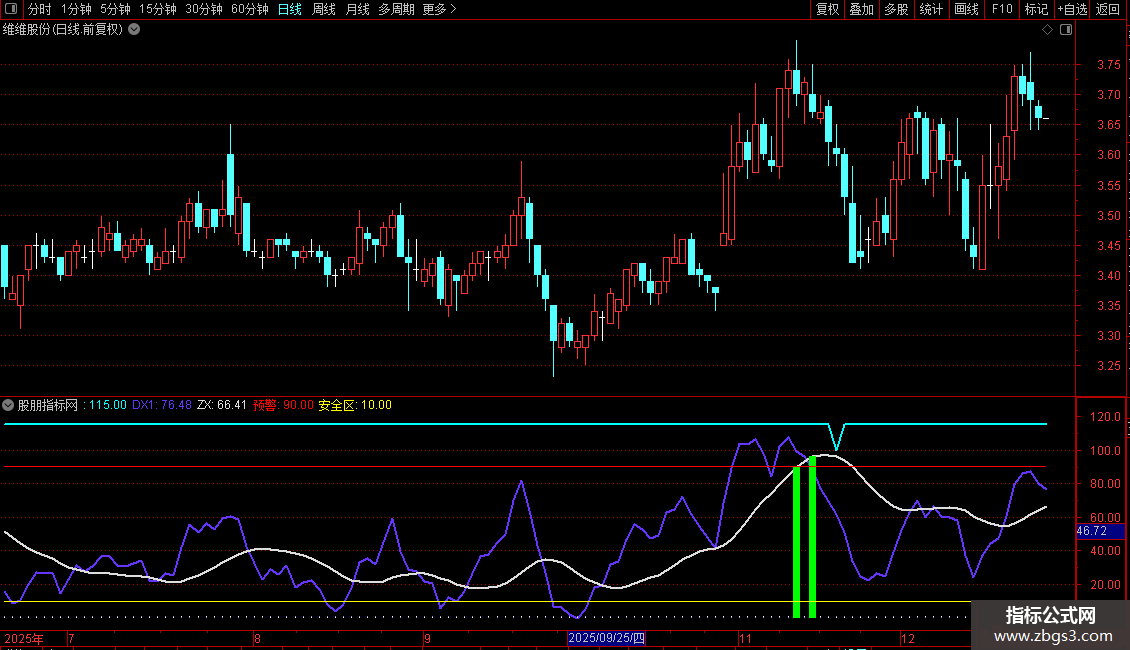 STICKLINE(ZX-REF(ZX,1)>0 ,ZX,0,10,0),COLORWHITE,LINETHICK1,POINTDOT;