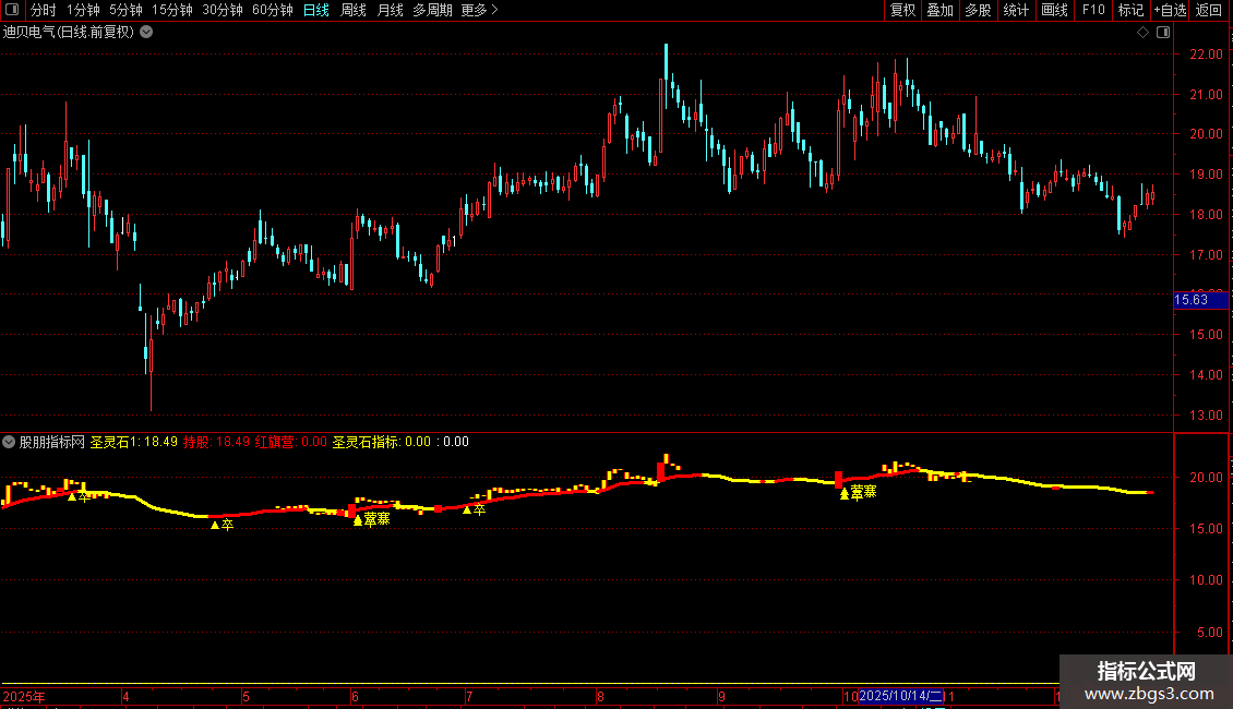 灵:=EMA(圣,3);0,POINTDOT,COLORWHITE;