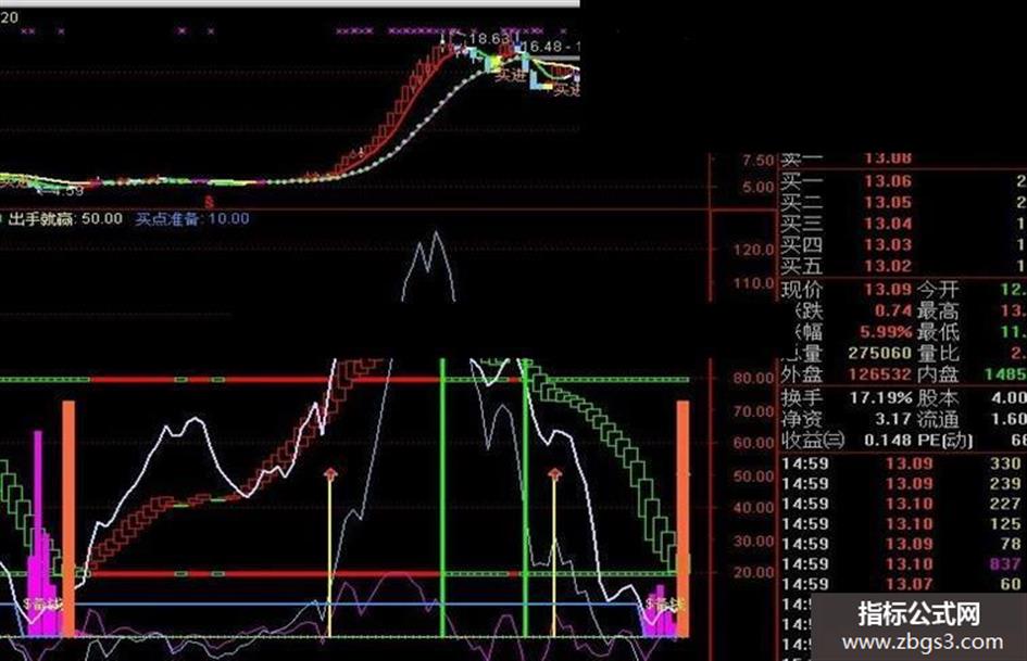 出手就赢:IF(DK1>7 AND REF(DK1,1)<0 AND (DK1-REF(DK1,1))>9,50,0),STICK,COLORYELLOW,LINETHICK2;