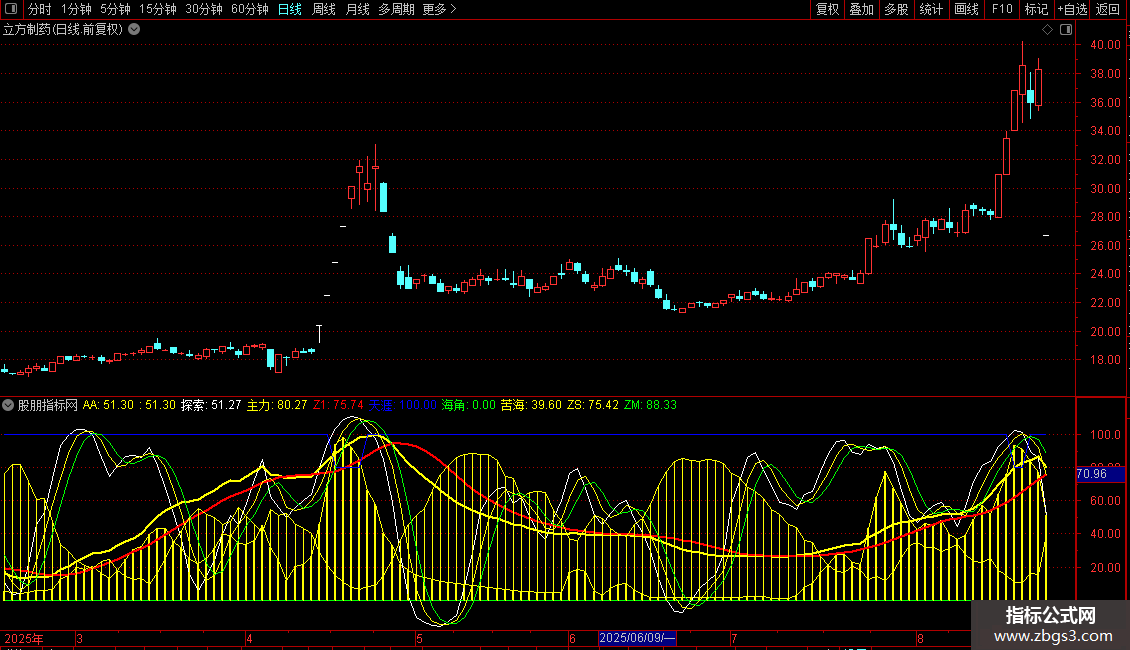 主力: (-1)*(EMA(Var7,1)-50)+50,COLORYELLOW,linethick2;