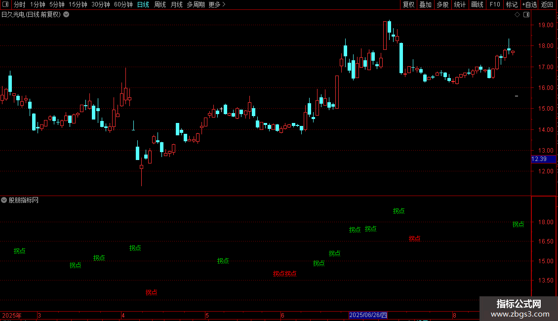 DRAWTEXT(HIGH<REF(high,1) and LOW<REF(LOW,1) and REF(HIGH,2)<REF(HIGH,1) and REF(LOW,2)<REF(LOW,1) and MA(CLOSE,5)>MA(CLOSE,10), HIGH, '拐点') ,COLOR00C800;