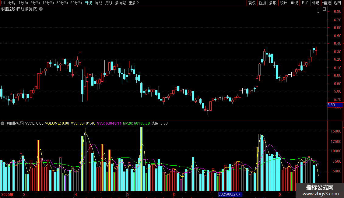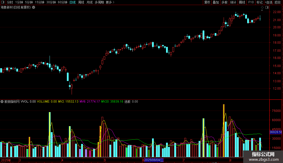 STICKLINE(CURRBARSCOUNT=1 AND PERIOD=5,VVOL,0,-1,-1),COLOR00C0C0;