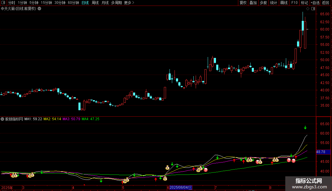 下降:=IF(REF(主力,1)>主力,主力,DRAWNULL)LINETHICK5,COLOR00FF00;
