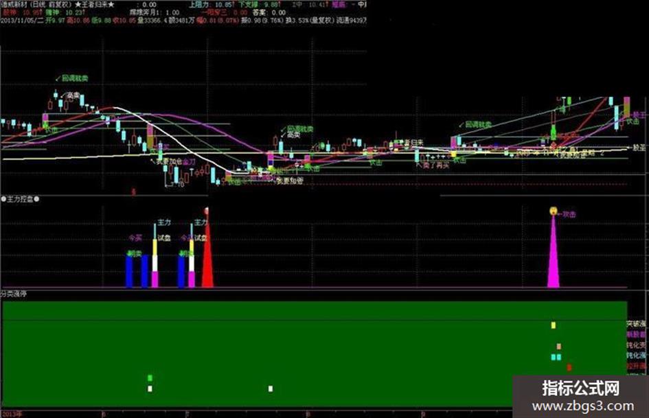 突破涨停:=IF(CROSS(C,A) AND ZT>0,-4,0),COLORYELLOW;