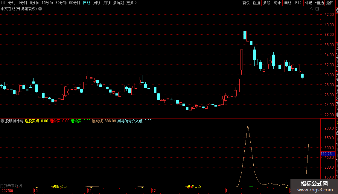 DRAWTEXT(黑马信号介入点>0,4.5,&39;●我的黑马介入点&39;):在“黑马信号介入点”大于0时,在4.5位置绘制红色文字。