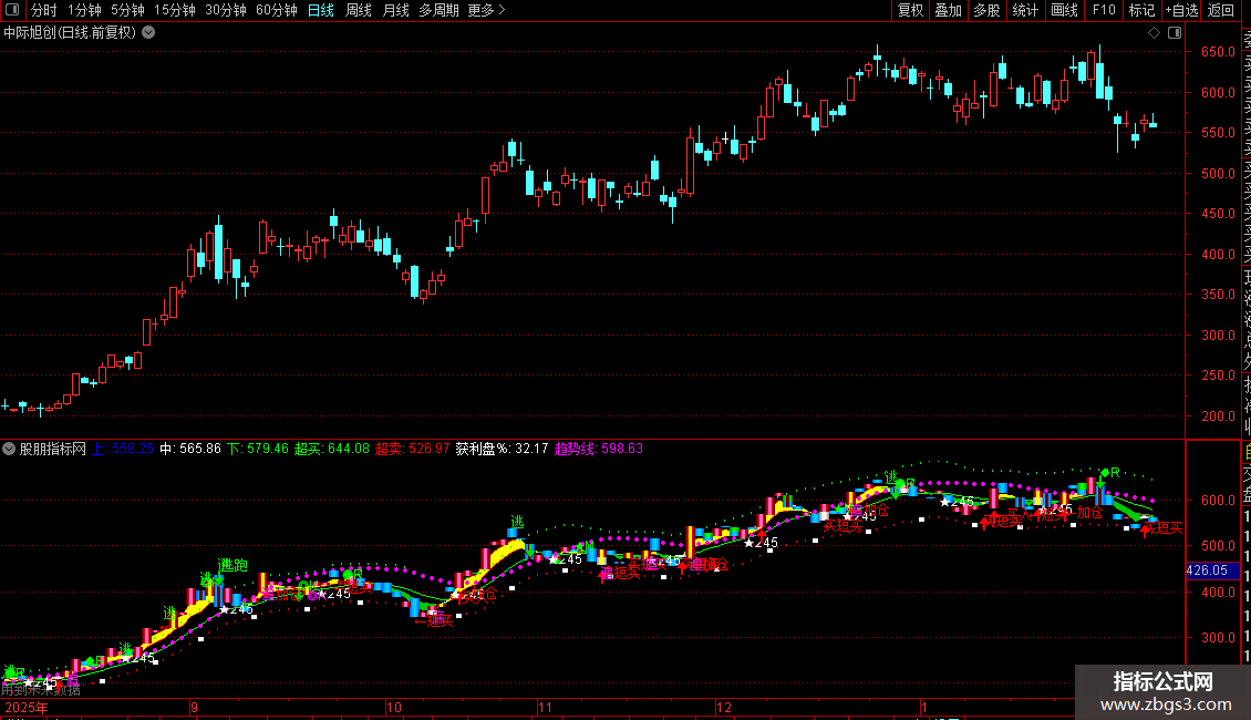 1. **动态阈值线**:根据股票流通盘大小,在MA10上方和下方绘制“超买线”和“超卖线”,作为动态的压力和支撑参考。