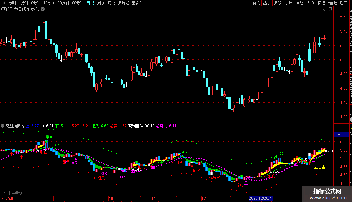 * **追涨信号**:当短期均线上穿中期均线且价格走强时,标注“追”。