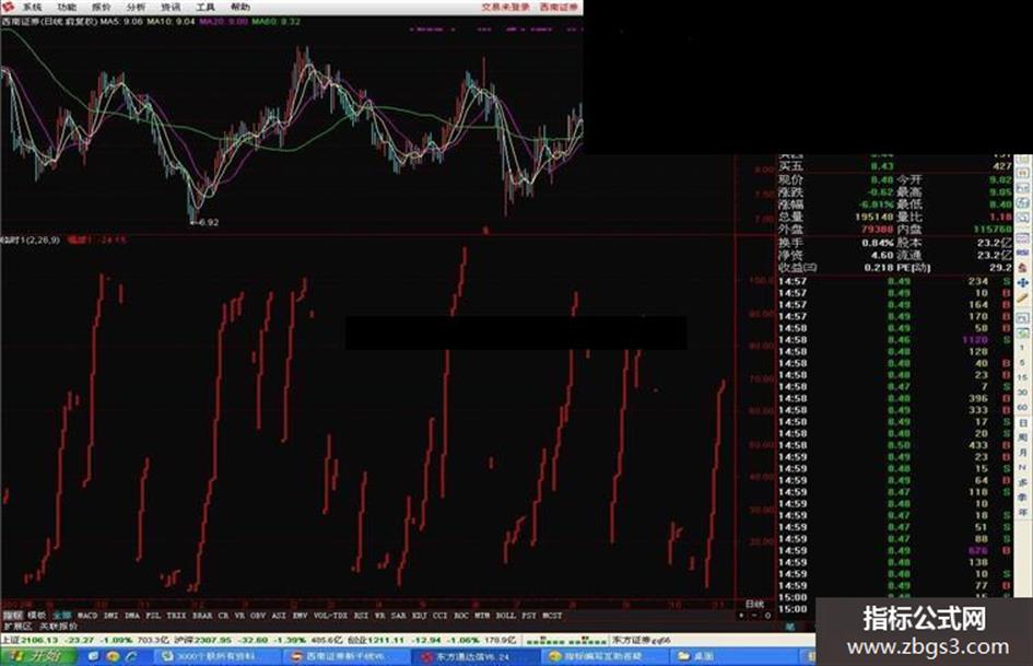 红线:STICKLINE(动力线>REF(动力线,1) ,动力线 ,REF(动力线,1),1.5 ,1),COLORRED;