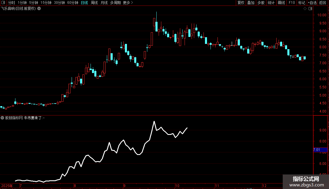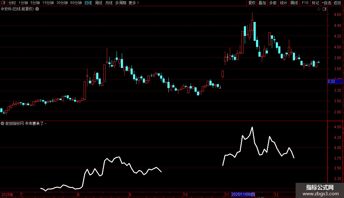 牛市要来了:IF(DEAA>REF(DEAA,1) AND DIFF>DEAA,C,DRAWNULL),LINETHICK3;
