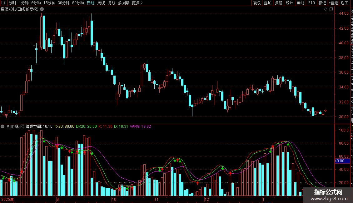 利用K、D金叉/死叉及其与长周期线(VAR9等) 的相对位置,判断短期动能与中长期趋势的共振点。