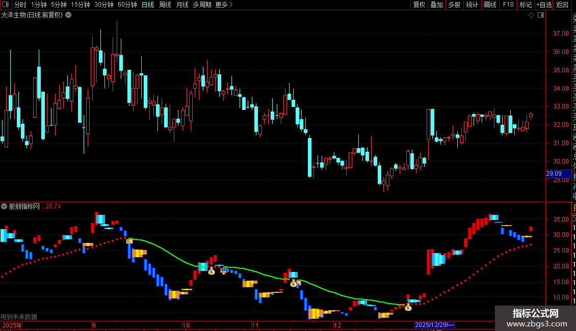 3. 银行收益线:该线取“【洗钱】目的”线和“洗钱手段线”中的较大值。当此线未突破前一日“【洗钱】目的”线值时,会以绿色粗线显示,可能暗示上涨动能暂时受阻。