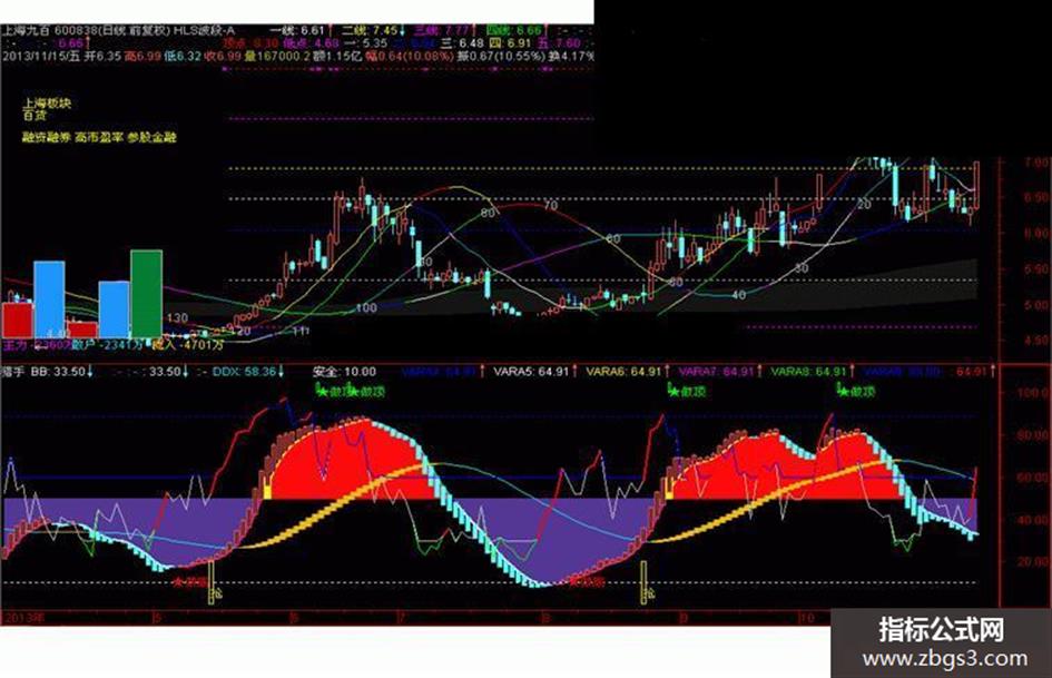 拉升:=IF(CROSS(VARC,生命) AND VARC>VARD AND VARC<55 AND C>O,9,0),STICK,COLORRED,LINETHICK2;