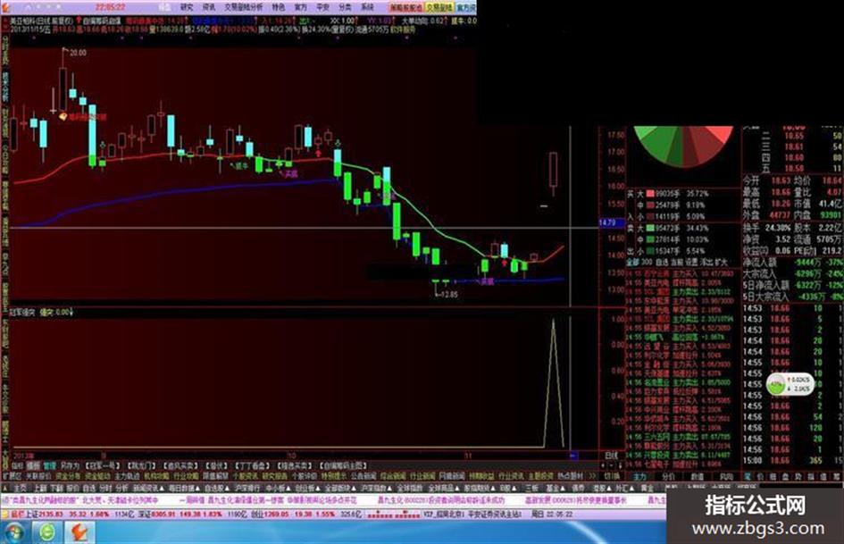 短线低盘:=(L-短底)/(短顶-短底)*100000,LINETHICK0,COLORRED;