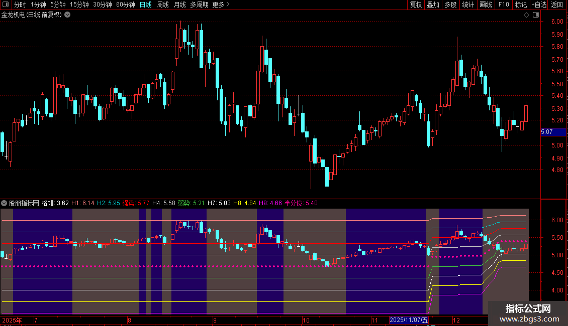 - 背景色变化反映短期与中期趋势的强弱对比。