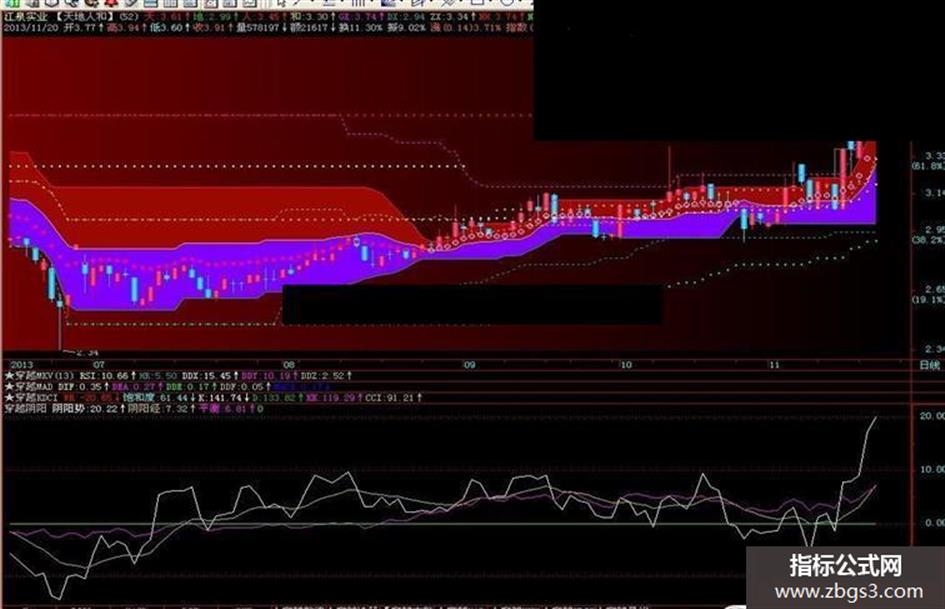此指标是通用源码,阴阳经为辅助线,重点关注阴阳势,平衡线及0轴的关系。 STICKLINE(c>0,0,0,10,0),COLORGREEN; 均价:=(AMOUNT/(VOL*100)); 一字板:=IF(H=L,C-REF(C,1),(C-O)); 阴阳:=一字板/均价*100; 阴阳势:SUM(阴阳,13),COLORWHITE; 阴阳经:EMA(阴阳势,13),COLOR00CCCC; 平衡:SUM(阴阳,52)/4,COLORMAGENTA;