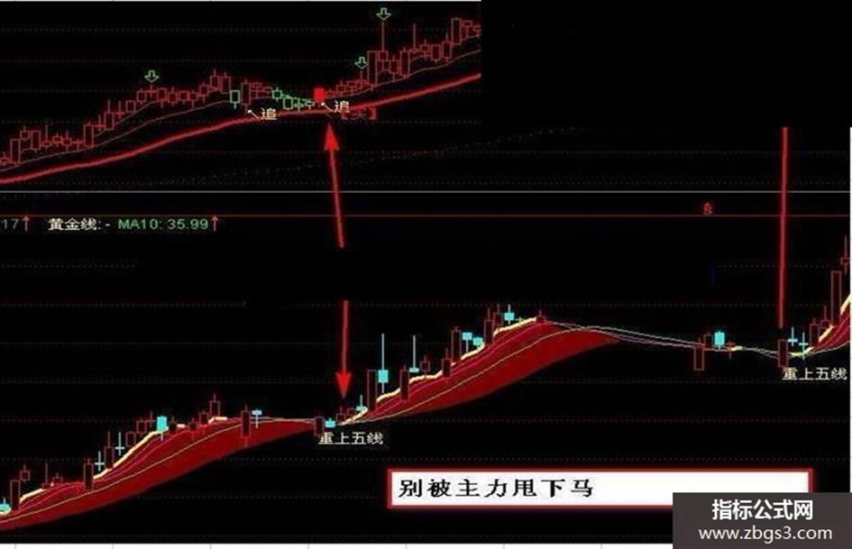 DRAWTEXT(CROSS(C,HJX) AND CROSS(C,MA5) AND CROSS(C,M20),L,'重上五线'),COLORYELLOW;