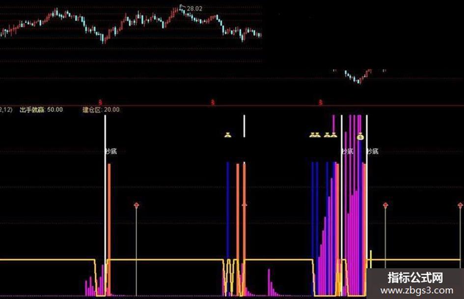 DRAWTEXT(CROSS(底部吸筹指标,-24),80,'抄底'),COLORWHITE;