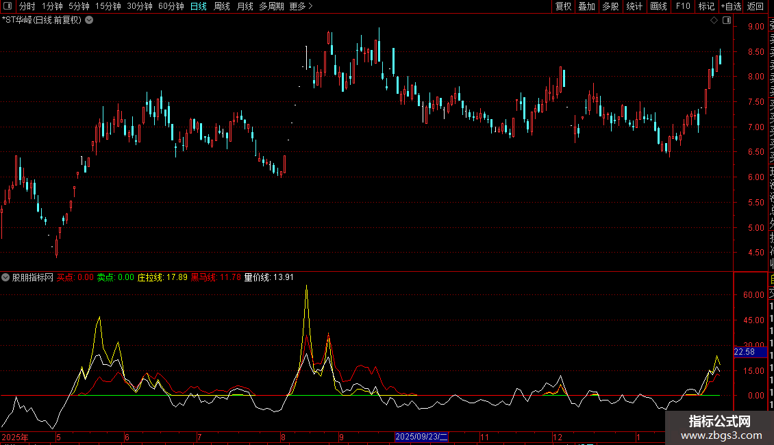 黑马线(红线): 反映中长期趋势强度。该线持续运行在零轴上方且数值增大,通常表示个股处于强势或“黑马”状态。