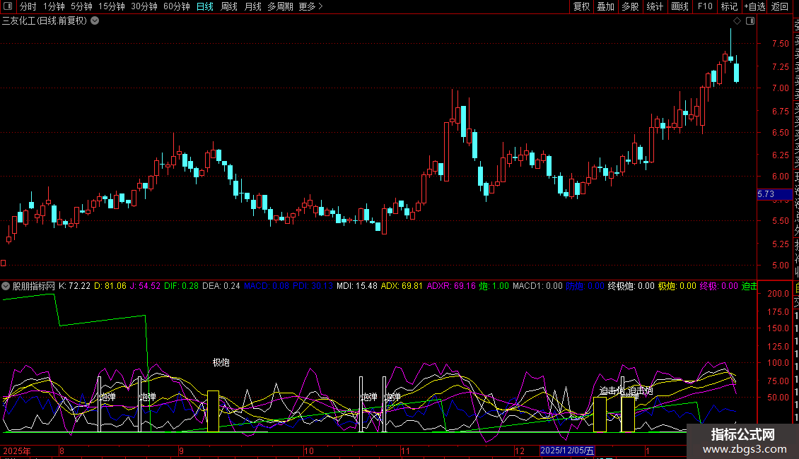 极炮: REF(K<D,1) AND K>D AND PDI>MDI AND REF( PDI > MDI,1) AND REF( PDI<MDI,2);