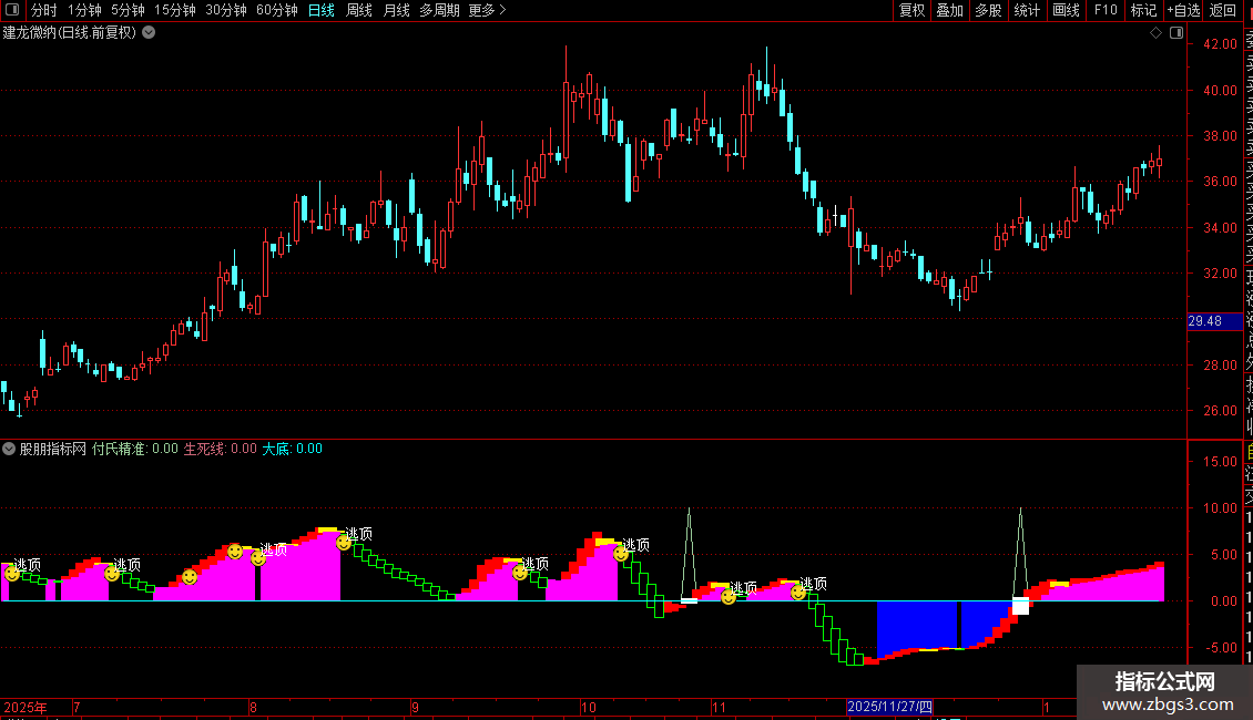 DRAWTEXT((CROSS(VAR9,VAR7) AND (VAR7 > 0)),VAR9,' 逃顶'),COLORWHITE;