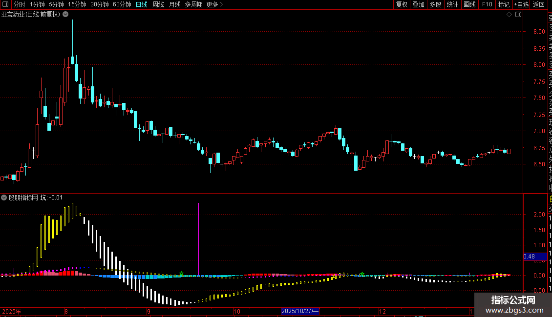 当满足条件②价上穿0时,在柱能的相反数位置书写文字,画黄色