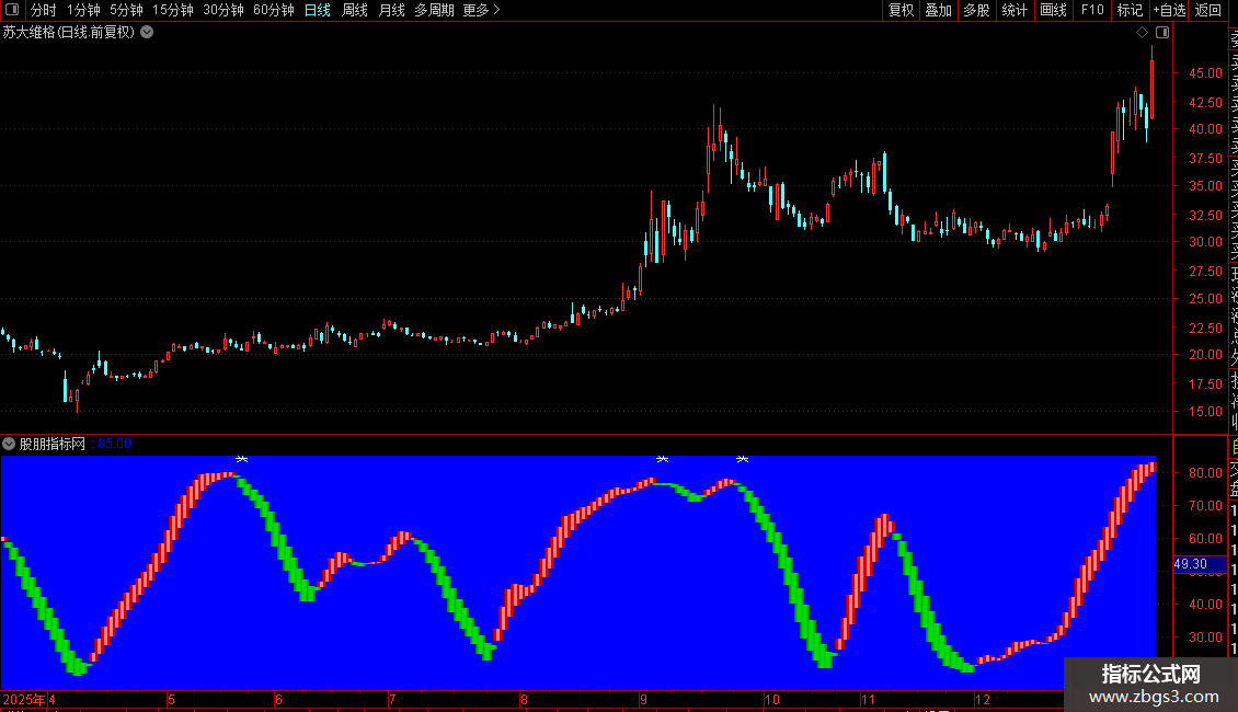 DRAWTEXT(CROSS(D,K) AND (D > 75),85,'卖'),COLORFFFFFF;