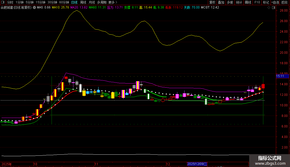 输出支撑:如果到最后交易的周期<=N,返回DD+KJ*0.191,否则返回无效数,COLOR00FF00,NODRAW