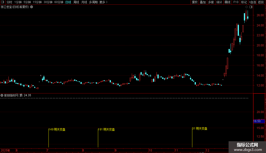 DRAWTEXT(成立距今=(32*8)-1,高-高*0.016,'255 明天变盘'),COLORYELLOW;