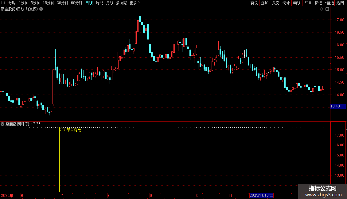 DRAWTEXT(成立距今=(32*9)-1,高-高*0.016,'287 明天变盘'),COLORYELLOW;