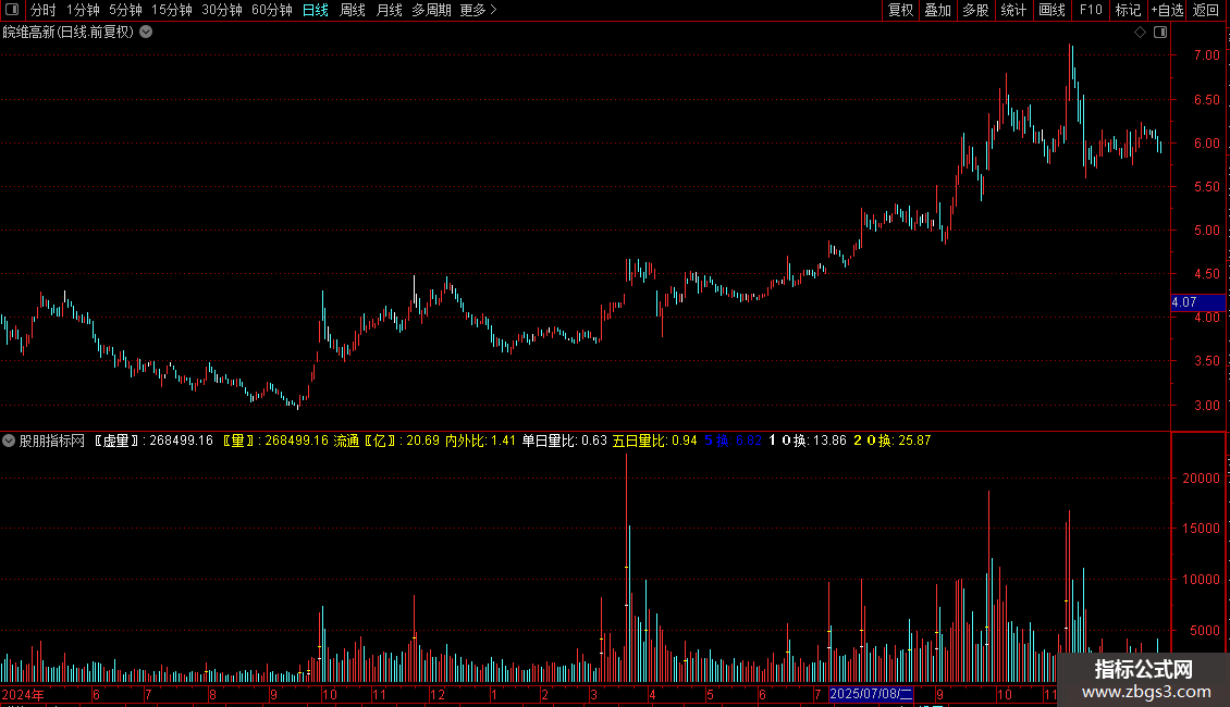 单日量比:V/REF(V,1),COLORWHITE,NODRAW;