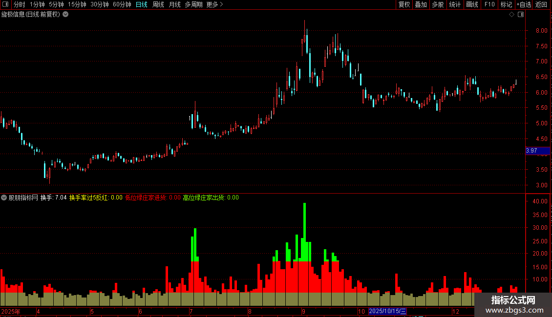 这个指标的特点就是让你更直观看清每一天的换手率。一切尽显眼底于以一网打尽。