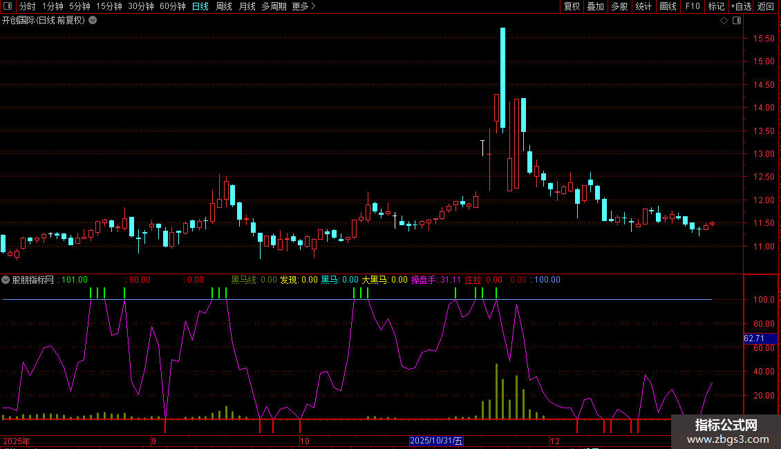 110为第一条指标线与操盘手100联动。