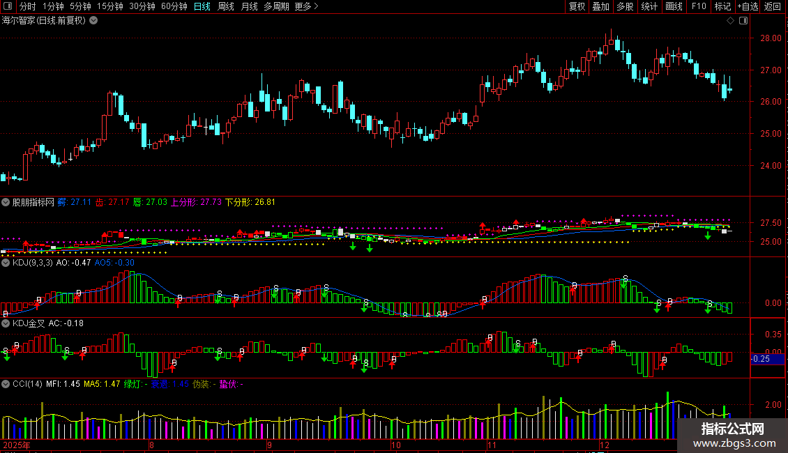 B3:=AO<0 AND REF(AO,1)<REF(AO,2) AND AO>REF(AO,1);