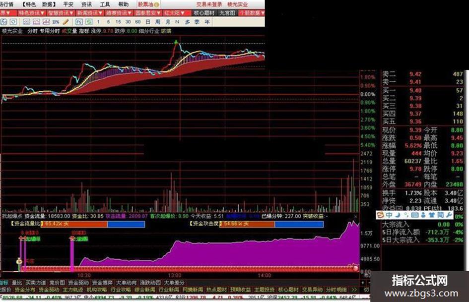 资金流入:=SUM(IF(C>REF(C,1),V,0),FROMOPEN),STICK,COLORRED;
