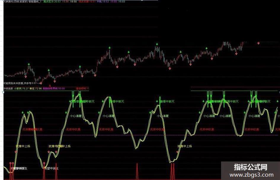 DRAWTEXT(CROSS(新庄,小股民) AND 新庄>75,80,'憧憬中毁灭'),COLORGREEN ,LINETHICK7 ;