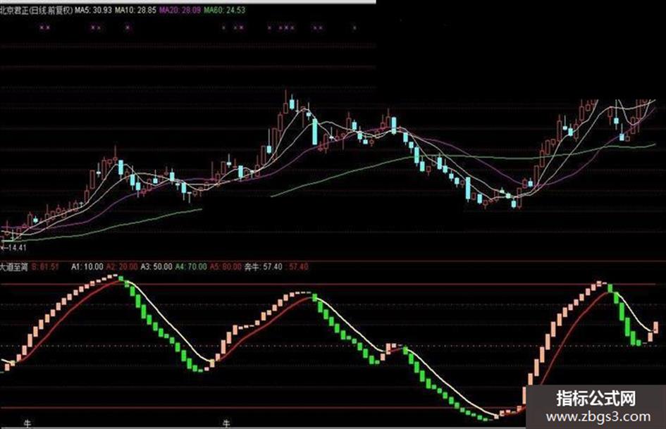 IF(奔牛>REF(奔牛,1),奔牛,DRAWNULL),COLORRED,LINETHICK2;