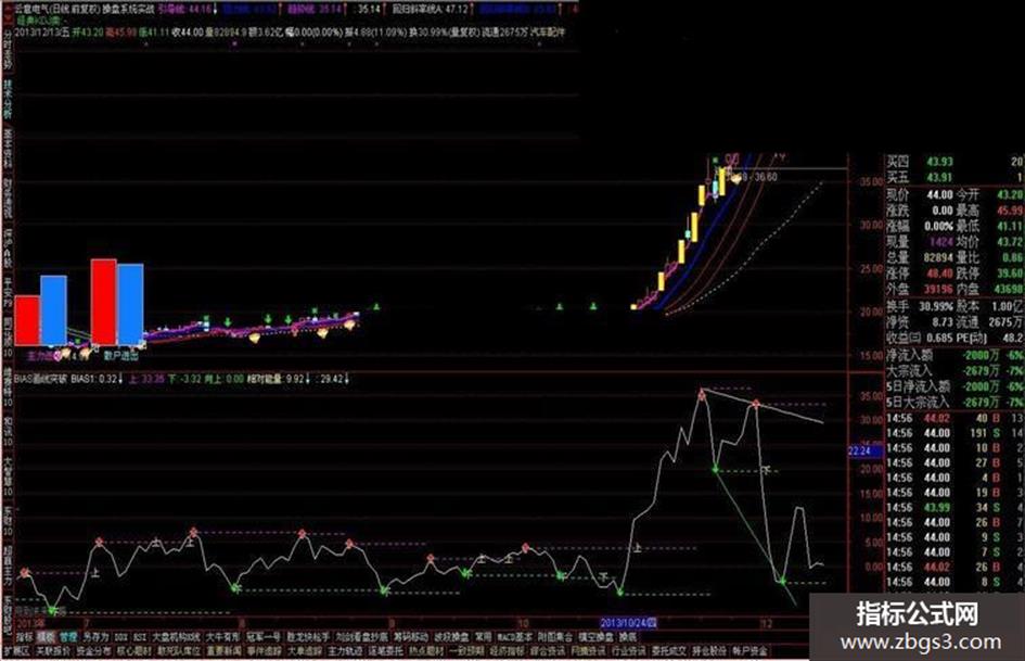 DRAWTEXT_FIX(CURRBARSCOUNT=1,0.015,1,0,'主力进出'),COLORMAGENTA;