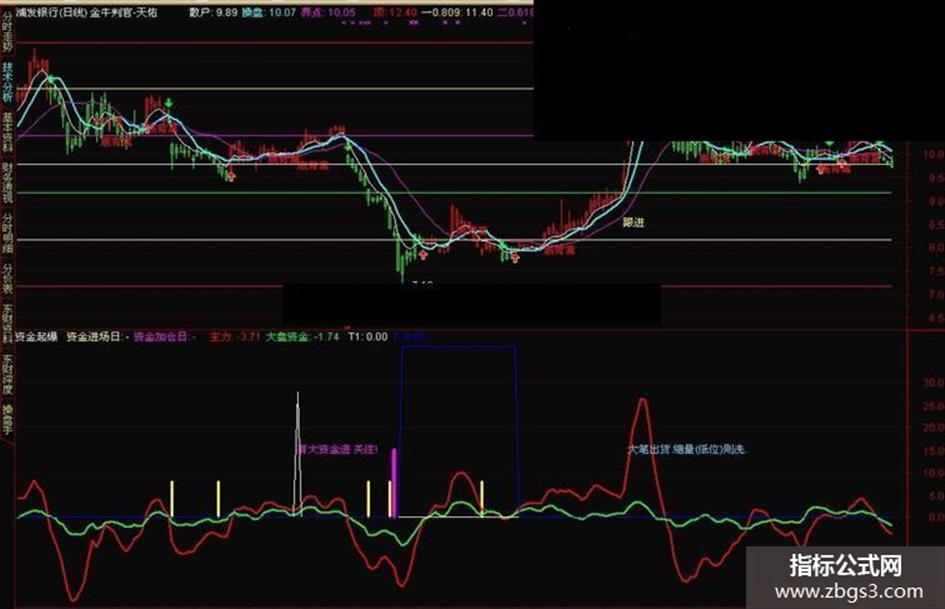 资金进场日:IF(A11>0,8,DRAWNULL),COLOR00FFFF,LINETHICK3,STICK;