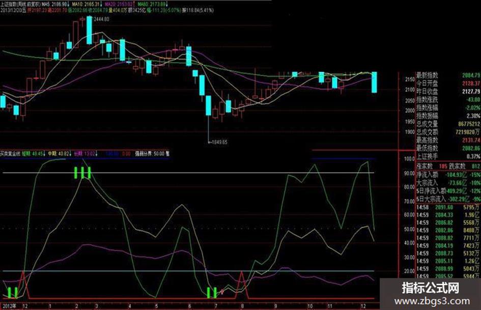 STICKLINE(短期>90 AND 中期>70,86,94,1,0),COLOR00FF00;